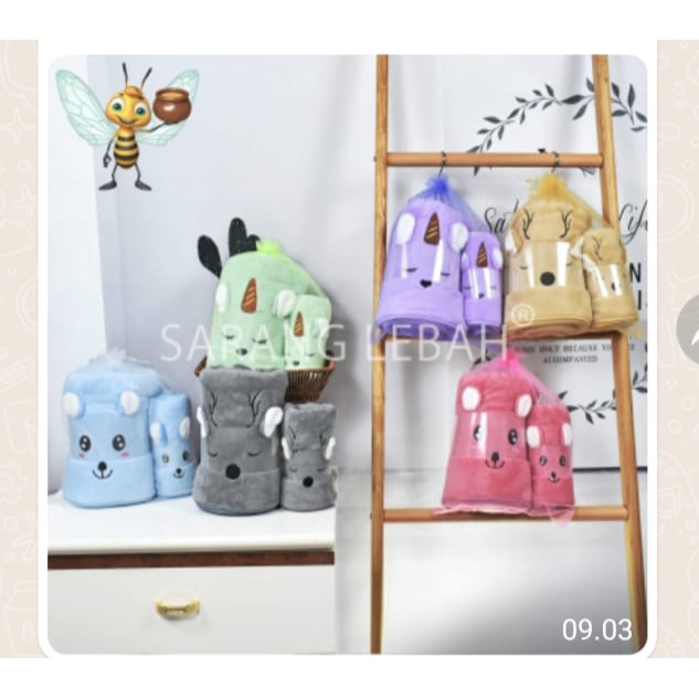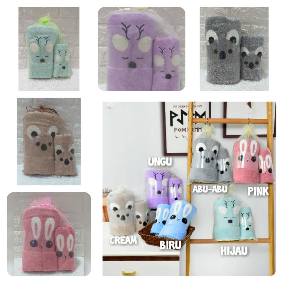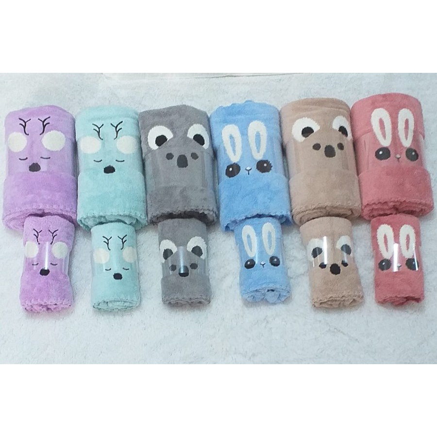 Harga 2 1IN 1 HANDUK BAYI MICROFEBER BONEKA IMPOR 140 X70 DAN 75 X35 HANDUK BAYI LEMBUT DAN LUCU